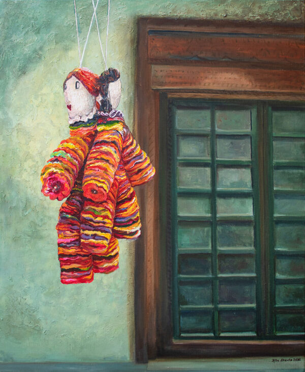 Artist: Ritu ChawlaTitle: "The Puppet Talisman"Medium: Acrylic on CanvasSize: 30 × 36 inches Year: 2026Price: Rs. 72,000/-